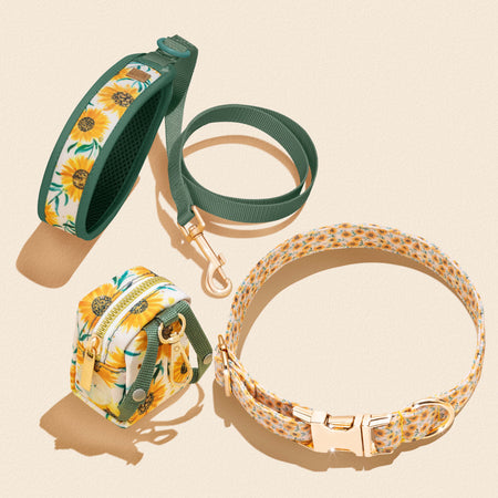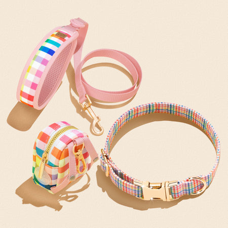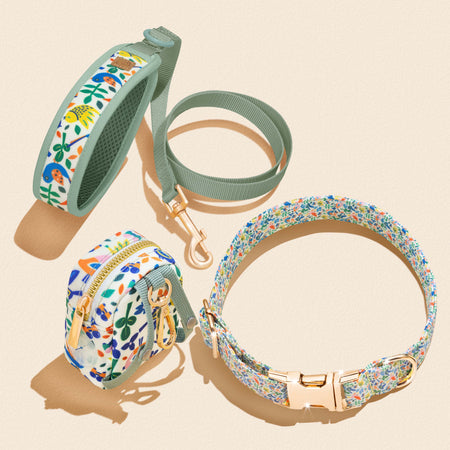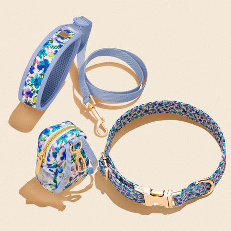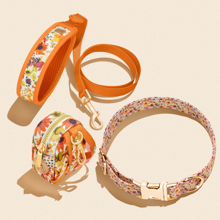 Our Dog Collar Walking set features our vibrant Dog Collar, Leash, and Waste Bag Holder, all designed with premium materials to ensure your furry friend looks and feels their best.