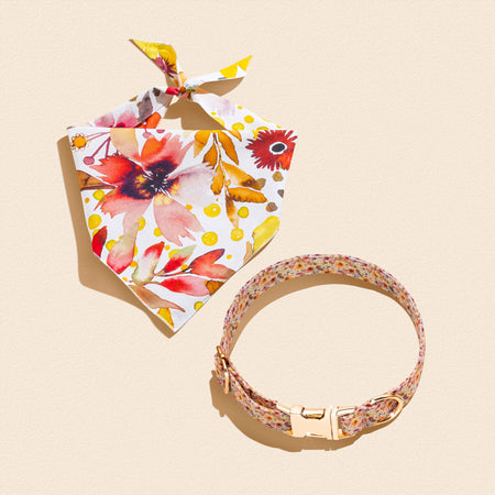 Complete the full set with a signature Matching Collar and Bandana. Each Collar and Bandana is beautifully crafted with vibrant hues, stunning intricate details and lots of love.