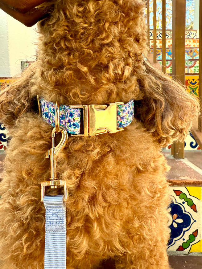 Crafted with soft natural cotton, our collar is as comfortable as it is secure. The gold-plated buckle adds a polished, durable finish, while the adjustable fit ensures all-day wear without rubbing or irritation. It's lightweight, comfortable, built to last and designed to turn heads, it’s the perfect everyday collar